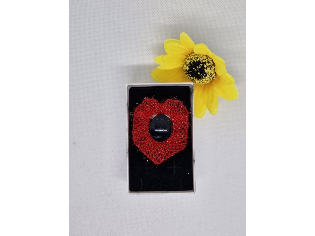 Ručně paličkovaná brož ve tvaru vlčího máku doplněná o černý korálkový střed
