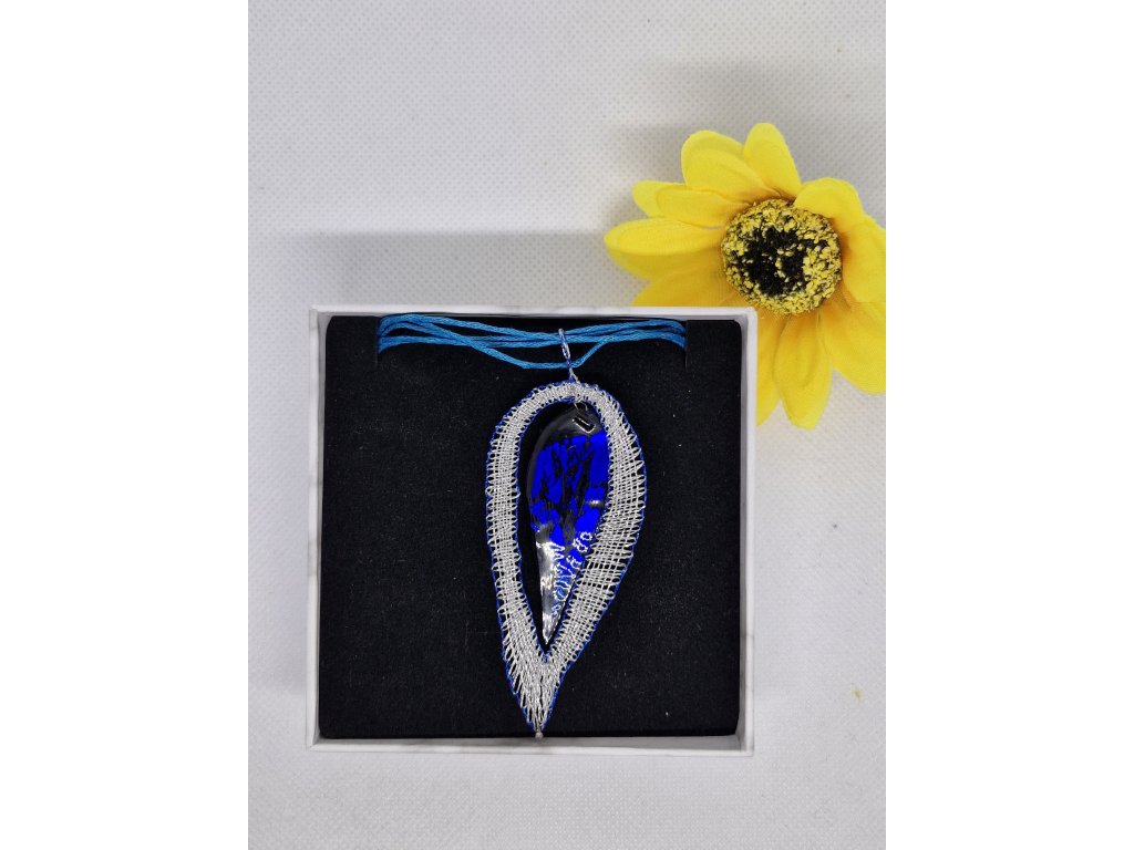 Ručně paličkovaný náhrdelník doplněný o ručně vinutý skleněný korálek